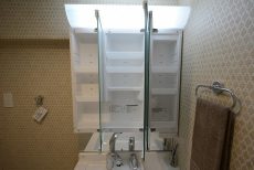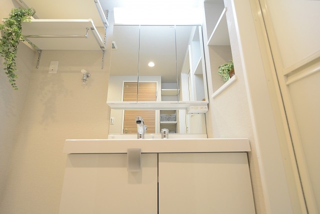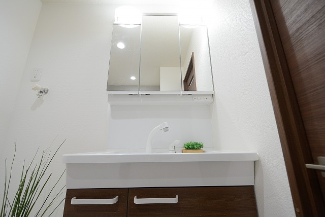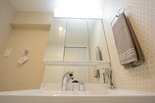 三面鏡の付いた洗面化粧台が付いていますね!!