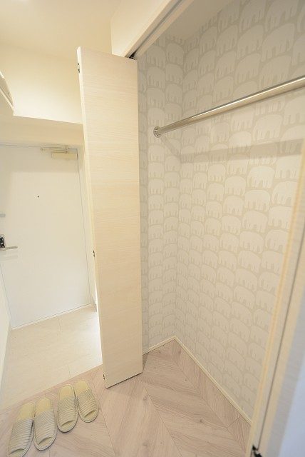 クローゼットの中はカワイイ象さんのクロスになっていました。