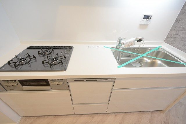 3つ口コンロはお料理好きの方には嬉しいですね♪シンクは大きめで使い勝手◎