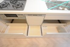 カウンター下の収納は引き出しタイプです。上から出し入れできるので見た目もスッキリ保つことが出来ますよ!