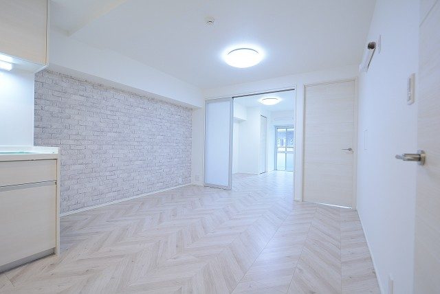 玄関ドアを開けるとリノベーション済みのピカピカの室内が迎えてくれます。