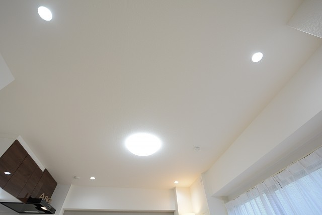 埋め込み式のダウンライトなので、天井に余計な凹凸が出来ず埃が溜まりにくいといったメリットもありますよ。もちろん体感的にもスッキリです。