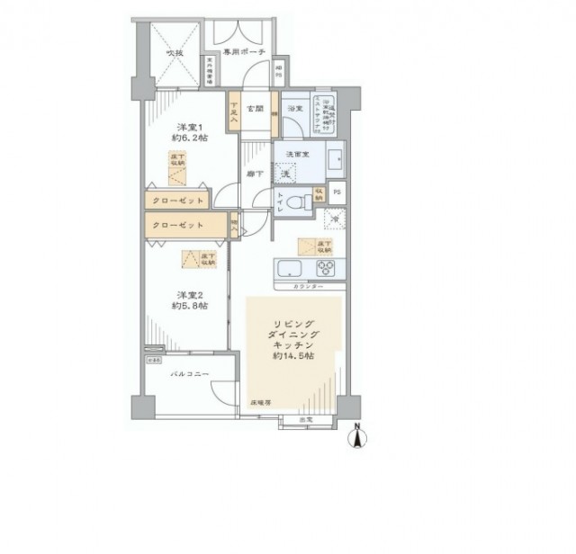 床下収納がもあります。収納が大きいと生活スペースが広く使えて◎