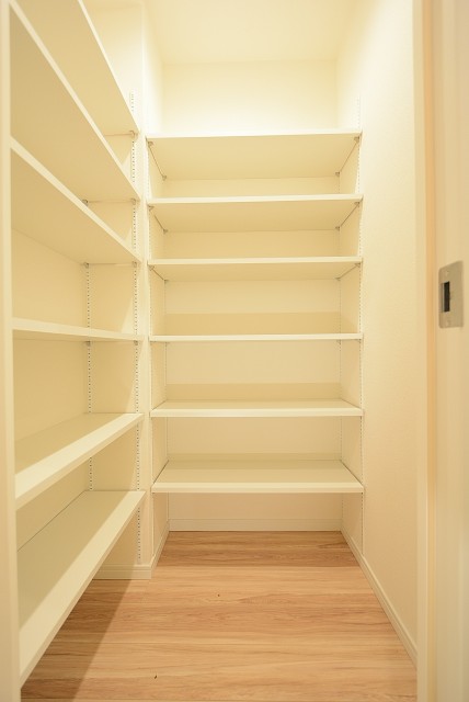 洗濯機置場の上部には、収納棚があるので、ストック品の収納も完璧です♪♪