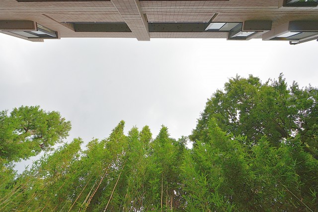完全に壁に囲まれた内廊下ではなく、場所によっては外に繋がっているので臭いや湿気が籠ることもなさそうです。