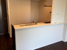 背後には扉付きの棚とカウンターがあります。ストック品の収納や消臭剤を置くスペースとして利用してみて下さい☆