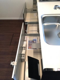 キャビネットはスライド式で使い勝手◎床下収納も付いています。