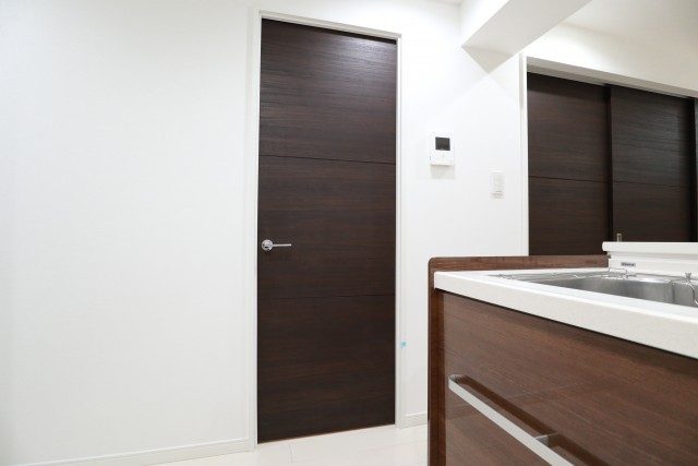 こちらはキッチンそばの洋室。窓の無いお部屋です。デスクや棚が作り付けられていて書斎みたいな雰囲気。テレワークなどをされる方も増えてきていますので、こんなお部屋があるのが普通になるのかもしれませんね。