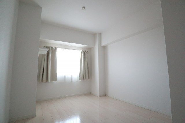 それでは、リビングダイニングキッチンから出入りする2つの洋室を見ていきます。まずは、キッチン側のお隣、約6帖の洋室です。西南西・南南東の二面採光で明るいお部屋です。