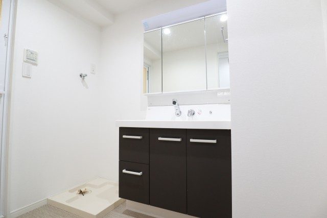 こちらは洗面室…洗面台、洗濯機スペース、浴室がまとまっています。