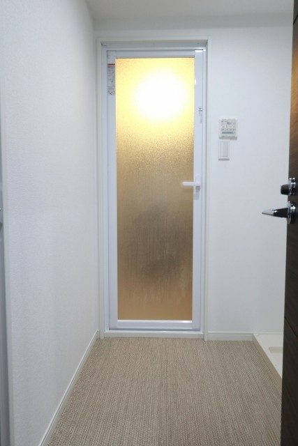 廊下の反対側は、トイレ、洗面所、浴室がまとまっています。
