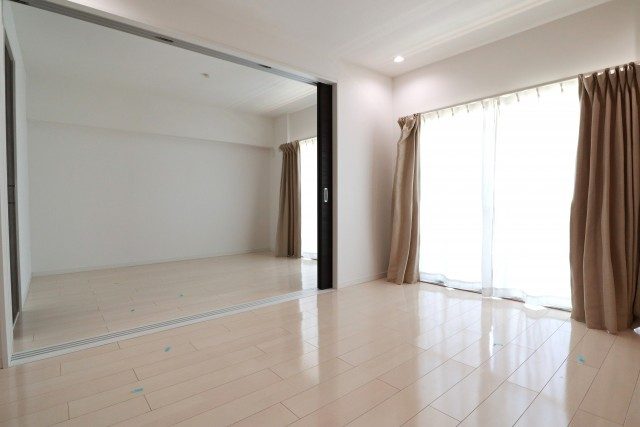 洋室の引戸を開けると、大きく開放的なリビング。ダイニングに。