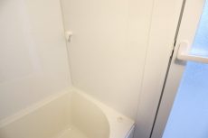 バスルームは、優しい木調パネルでリラックスできる空間です。バスタブも大きめサイズです。追炊き機能付きなので、いつでも温かい湯船に浸かれるのは嬉しいですね。