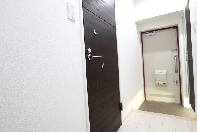 扉を開けるとお部屋は、左右に広がっています♪♪インターホンはTVモニター付き。来訪者の顔もバッチリ確認できます。
