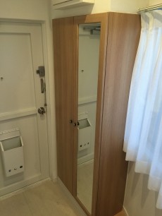玄関入って左手、シューズボックスです☆大容量のトールサイズ。棚が可動式になっていますので、ブーツの収納もOK♪♪扉には大きな姿見があるのでお出かけ前のチェックもバッチリです(o´∀`ノ