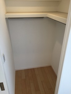 お部屋の北側に位置する収納は、ウォークインクローゼット。奥行きもしっかりで大収納です。収納が多いと生活スペース広がって嬉しいです(´∀`*)