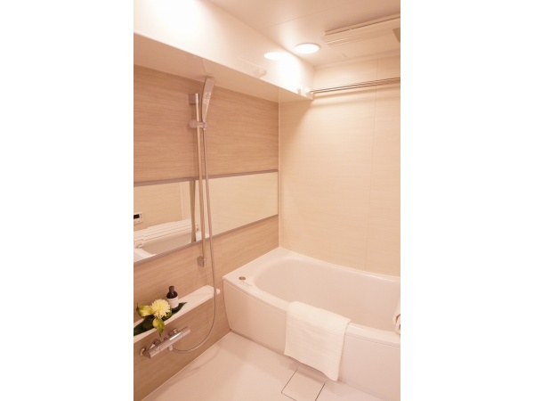 バスルームは、やさしい風合いの木調のパネル☆汚れにくくカビも付きにくい壁材が使われています。ゆっくり大きなバスタブにつかって疲れを癒せそうです♪♪追い焚き機能付きでいつでも暖かいお風呂に入れます。