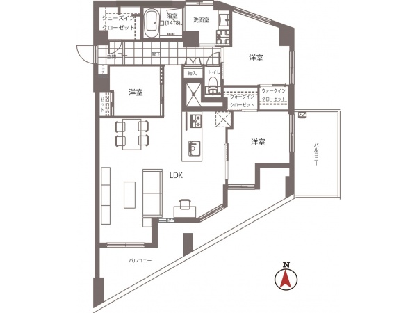 3LDK、82.87㎡のお部屋です。
