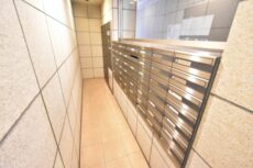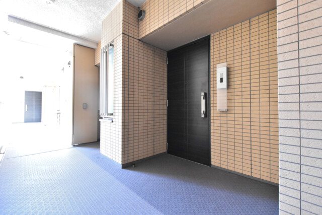 入口にはオートロック完備!頭上には防犯カメラも目を光らせています。