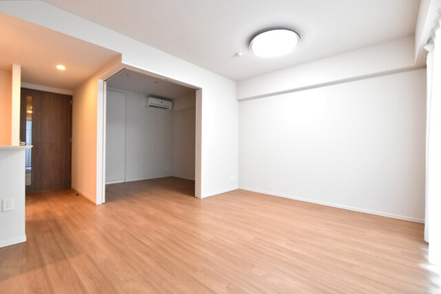 こちらは、隣接する約4.5帖の洋室の仕切り扉を開放してLDKとつなげた様子。合わせて約18帖の広いお部屋の出来上がり!状況やライフスタイルによってフレキシブルに使えるのは便利ですよね。