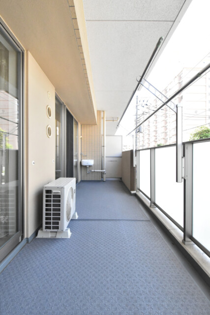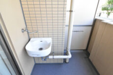 物干し金具や竿も設置されお洗濯物を干すこともできるようになっています。方角的に干すならお昼くらいからがお勧めですよ。バルコニーにはスロップシンク付き。流しや浴室では洗いづらいものを洗ったり、この広いバルコニーでガーデニングを始めるのもいいかもしれませんね。