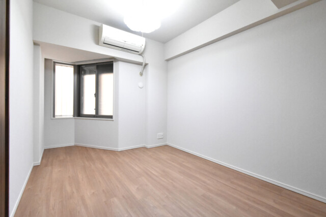 廊下に面した東側に窓のあるお部屋です。独立性の高さからメインのベッドルームにおススメ。後程ご紹介しますが収納豊富なので収納家具の必要がなく、大きなベッドだったり、デスクやドレッサーなどのベッド以外の家具を置くこともできそうです。