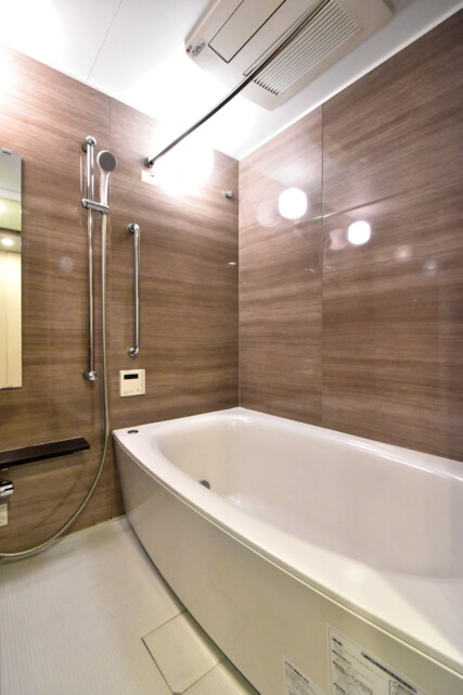 1418サイズの浴室は、ダークブラウンの木目パネルを使用し高級感もたっぷり。ゆったりとした空間でリラックスしたバスタイムを過ごせそうですね♬