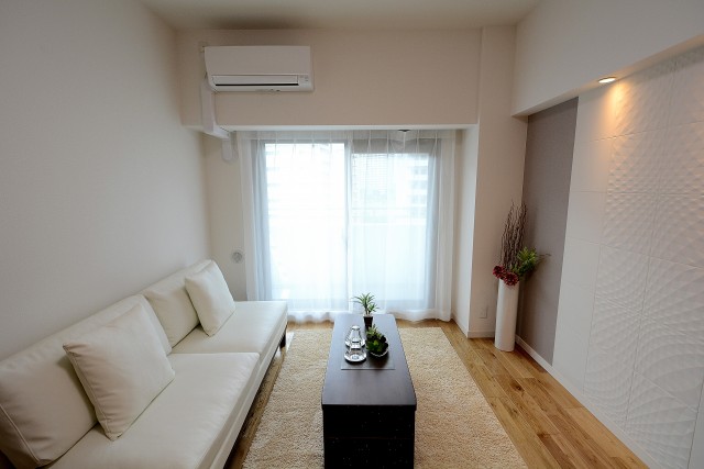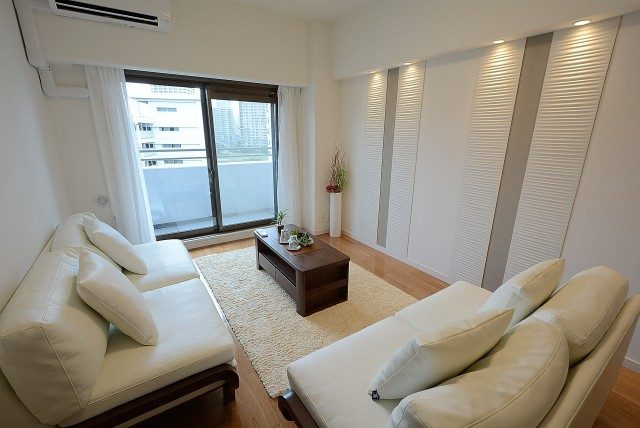 南東向きバルコニーに面した大きな窓のあるお部屋です。飾り天井や間接照明など随所に拘りを感じますね。