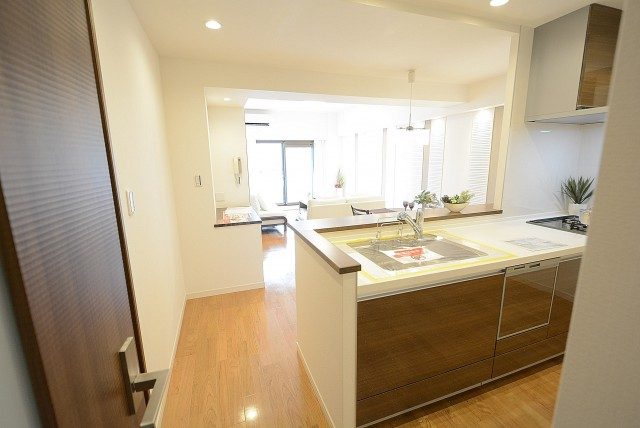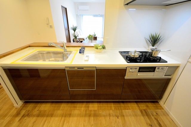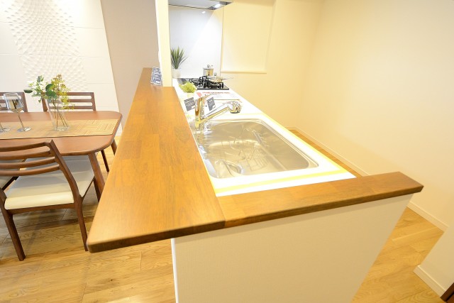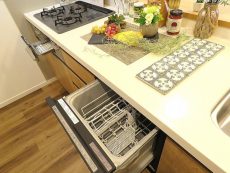 解放感たっぷりでコミュニケーションが取りやすいキッチンです。夕食の支度をしながらお子様の話に耳を傾けたり、お茶の準備をしながらご友人の会話の輪に加わったり・・・リビングダイニングとの一体感が人気の秘密です。食洗器に洗い物をお任せすれば、食後もみんなでのんびり出来ますよ。