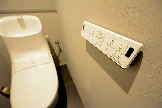 ウォシュレットのパネル側がアクセントクロスになっております。