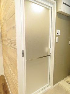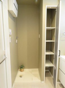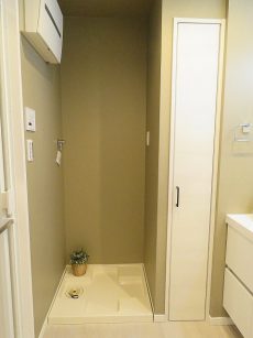上部に棚が設置され、開き戸タイプなのでプライバシーが守れます◎