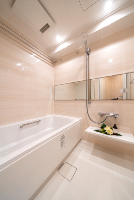 浴室は木目パネルに囲まれた落ち着いた雰囲気。ゆったりと湯舟に浸かれば一日の疲れも洗い流せそうです。追い焚き機能や浴室換気乾燥機などの便利機能も完備!これからの季節お天気を気にせずにお洗濯出来るのは嬉しいですよね♬