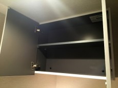 中には棚が無いので収納用の棚を取り付けて、中もスッキリさせましょう(^v^)