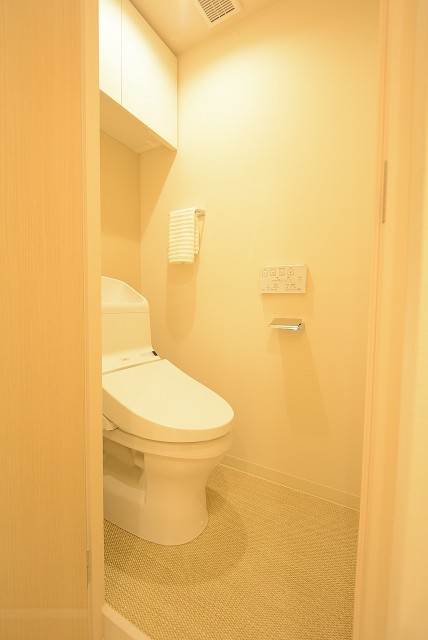 上部に吊り棚があり、トイレットペーパー等を室内にそのまま置かなくていいのでとても清潔にお使い頂けます☆