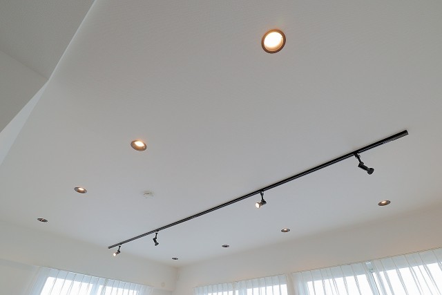 照明は埋め込みタイプとレールに取り付けられている2種類のダウンライトが使われています。