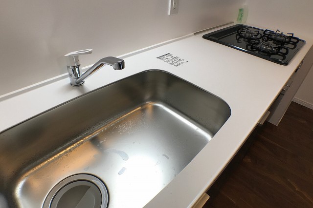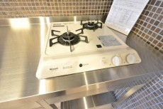 シンクは大き目で継ぎ目がないので、お掃除がしやすそう☆コンロは2口ですが、お一人暮らし、お二人暮しなら十分ですね♪