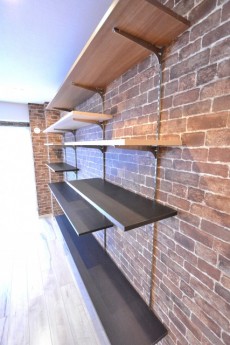 リビングダイニングの北側、南側には収納棚が設置されています。棚と言っても写真の様な「見える」タイプなので、収納と飾りをうまくミックスして、ステキなお部屋にしてください(^^)/