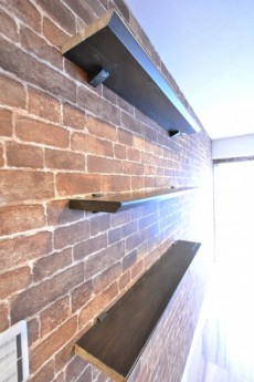 カウンターの上にはちょっとサイズの収納棚があります。お出かけグッズ(カギや腕時計等)を置いておいたり、飾り棚としてこちらにもオシャレな物を置いたりしても良いですね(^v^)