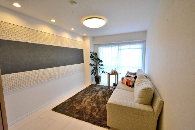 キッチンの東側に5.5帖の洋室があります。北側の壁にはエコカラットとダウンライトがついていてとてもオシャレです☆