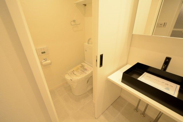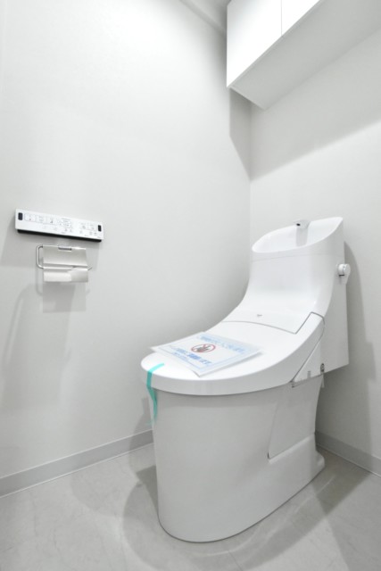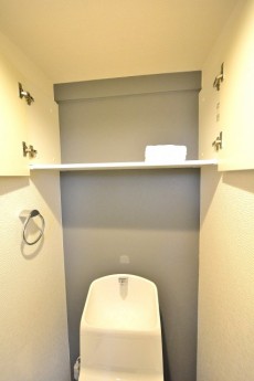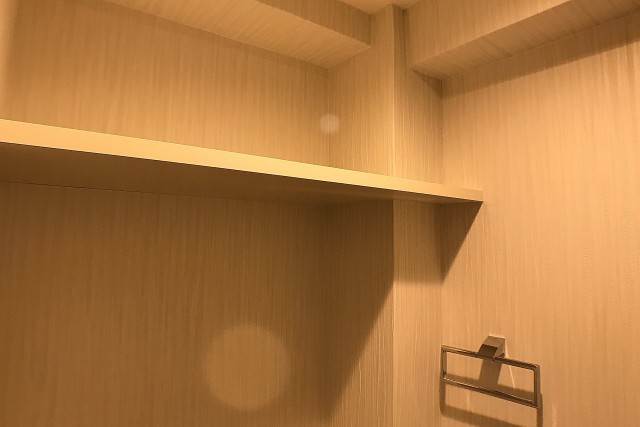 上部には棚も設置されていて消臭剤やトイレットペーパーのストックなどにお使いください。