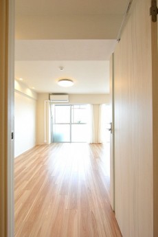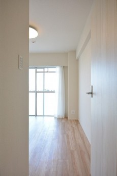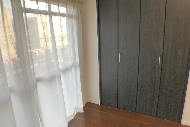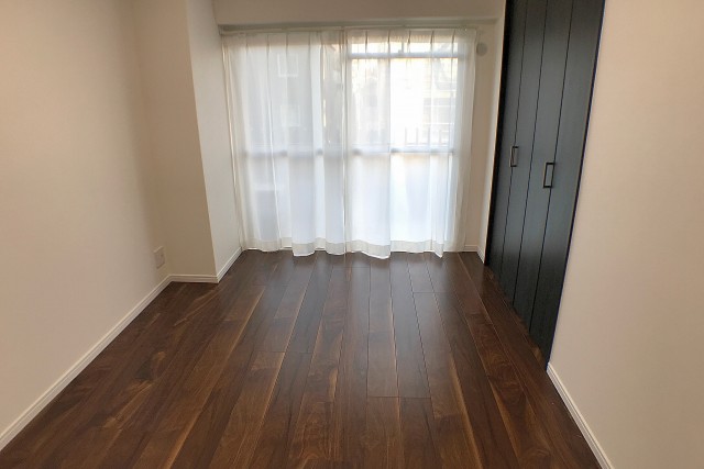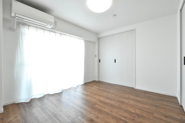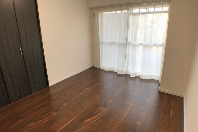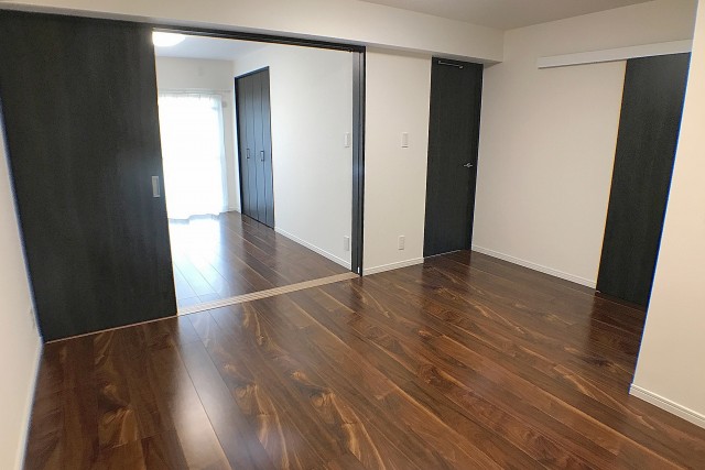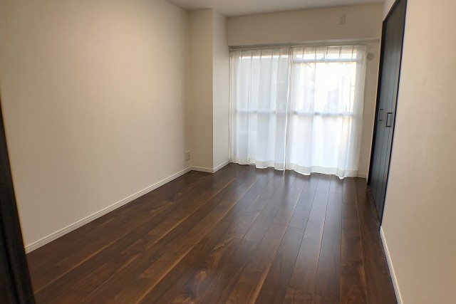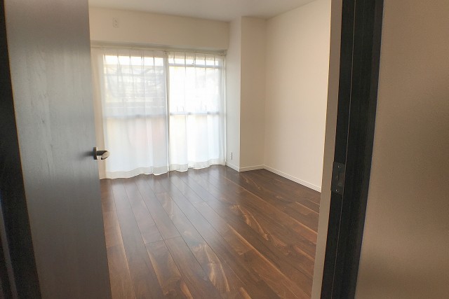 こちらは約5.6帖の洋室。LDKと同じバルコニーに面したお部屋です。入口が引き戸なのでデッドスペースも出来ず、お部屋のスペースを無駄なく使うことが出来ますよ。