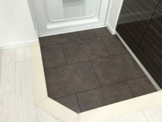 お部屋の色合いに合わせたブラウンパネルのバスルーム。