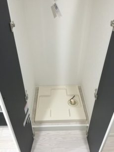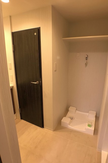 洗濯機置場には収納用の棚がありませんので、上部に棚を取り付けてスッキリとお使いください☆