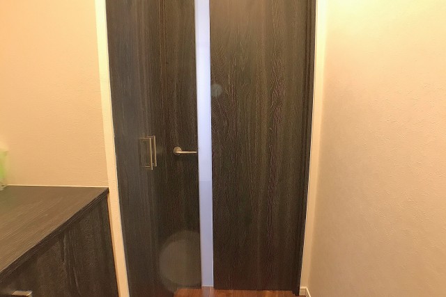 仕切り扉は引込式。開けてもスッキリなので…