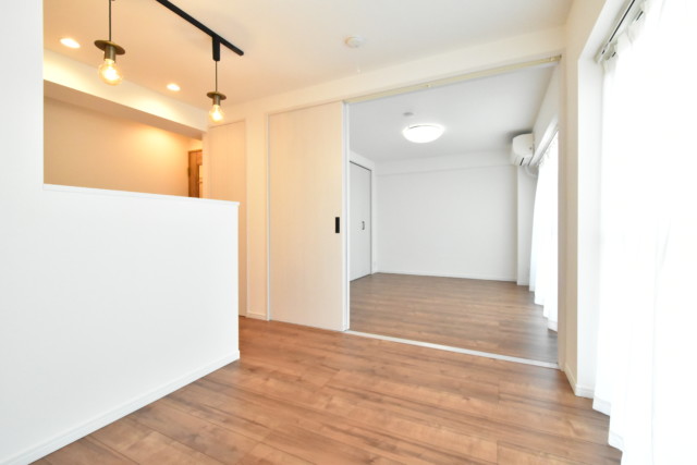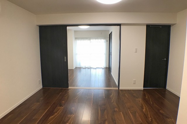 窓のないお部屋ですが、洋室との開口部の広い間仕切りを開ければ明るい日差しが差し込みます。