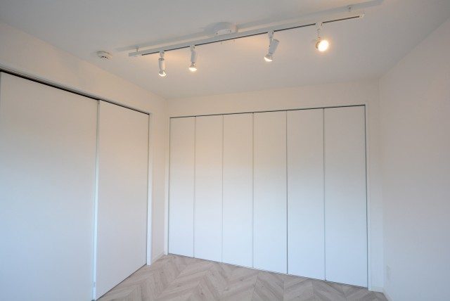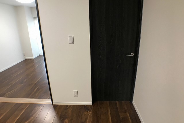 こちらは約4.68帖の洋室。窓のないお部屋です。シンプルな色使いで幅広く家具を選べそうですね。