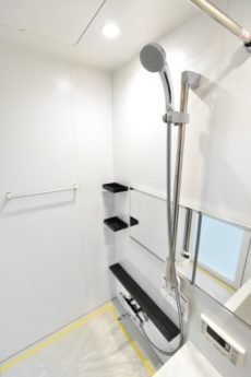 リンナイ製の追い焚き機能付きユニットバスはワンタッチでお風呂を沸かせます。そのまま保温もしてくれるのでいつでも温かいお風呂に入れますよ。長風呂派には嬉しい機能です。