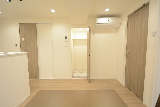 リビングの中ほどには洗濯機置場も。