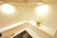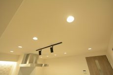 埋め込み式のダウンライト、シーリングライト、レール上のダウンライトをふんだんに使っているのでとても明るいです。
