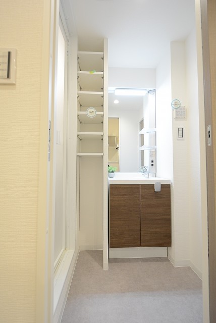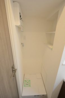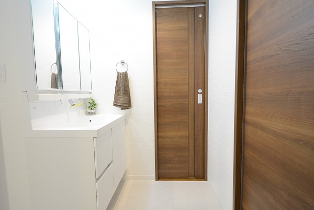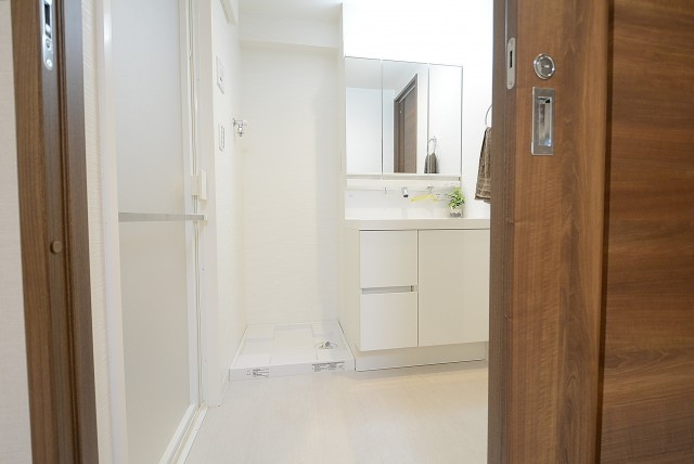 洗濯機置場も見えますね。洗面室は脱衣所も兼ねているので、脱いだお洋服はそのまま洗濯機へ放り込んでしまいましょう!お部屋のアチコチに脱いだ靴下やシャツが散乱するようなことも無くなりそうです。